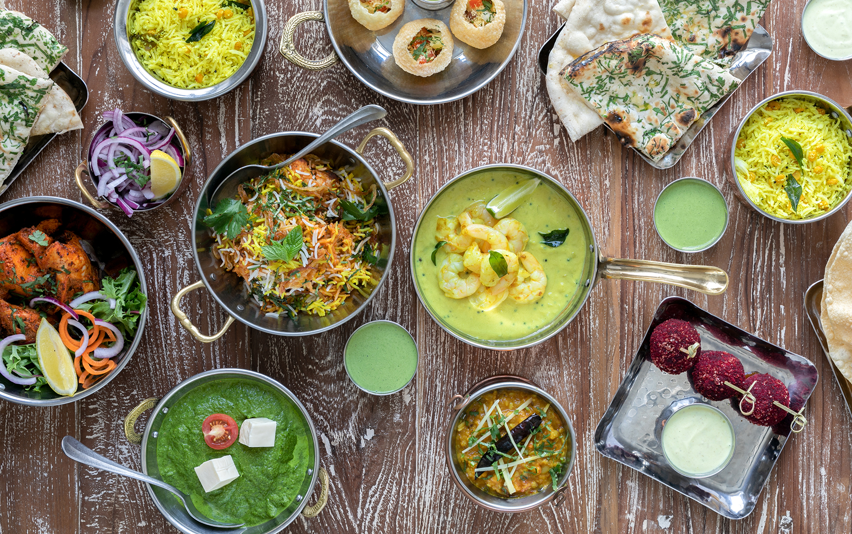 We love seeing our tables laden with fragrant biryanis, spicy curries, baked-to-order naan, and smoky grills, straight from the tandoor. All our dishes are served together in true Indian style, with plates shared and savoured around homely communal tables or in cosy corners with the hum of conversation and 80s tunes always in the background. We serve brunch, lunch, dinner, alongside a drinks list of wines, artisan beers and Indian lassis.